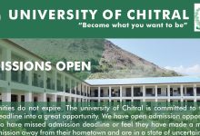 یونیورسٹی آف چترال میں محدود نشستوں پر داخلے جاری ہے