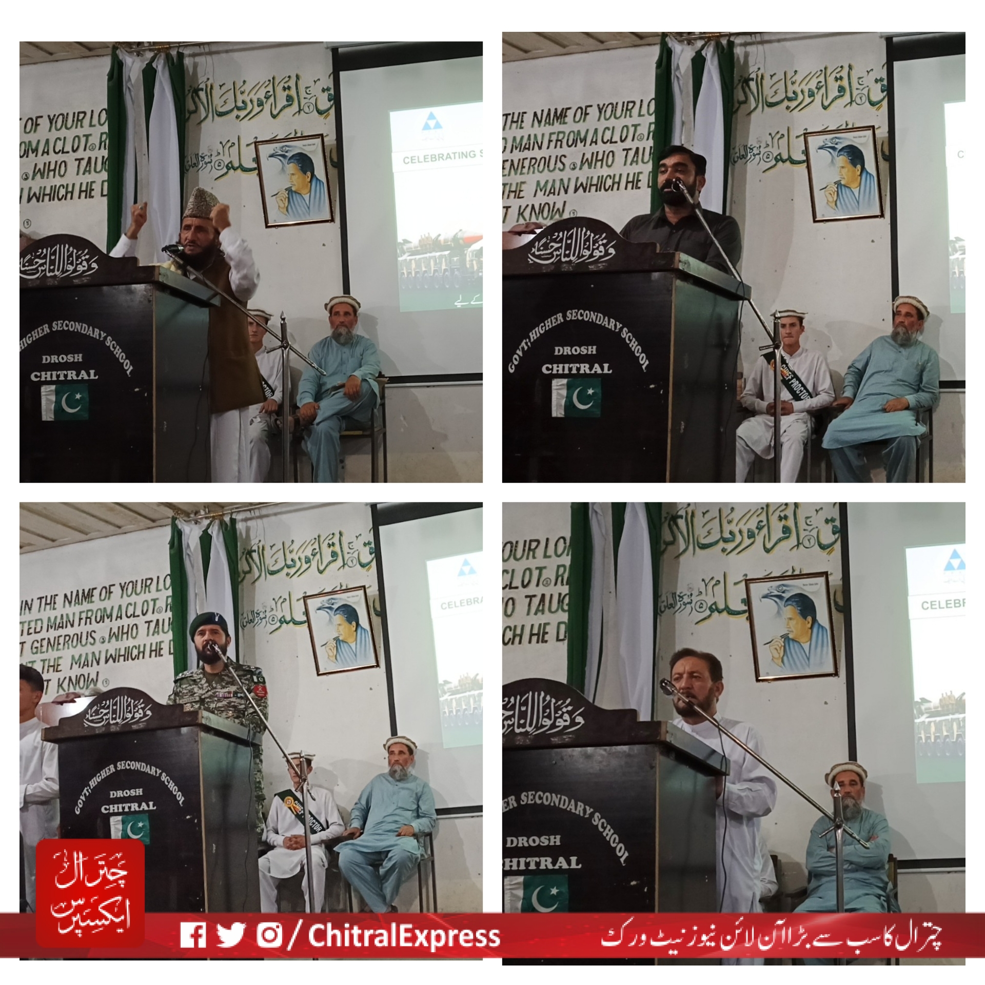 تقریب کے اختتام پرگورنمنٹ ہائیر سیکنڈری سکول دروش کے پرنسپل سلیم کامل نے تقریب میں تشریف آروی پرتمام مہمانوں اورپروگرام کے انعقاد پرندا پاکستان کاشکریہ اداکیا۔