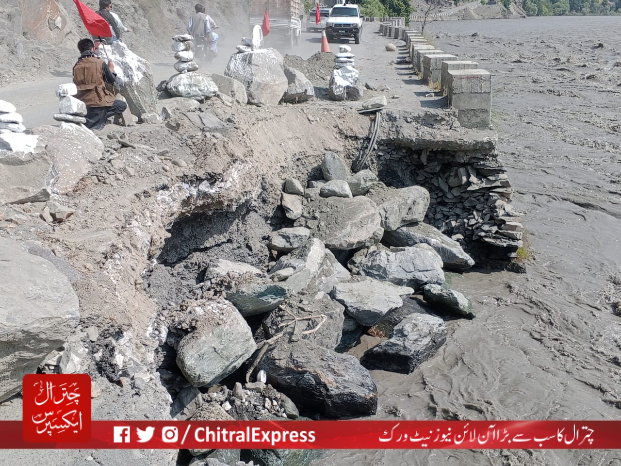 چترال (رپورٹ: نور افضل خان )ائر پورٹ روڈ دریائے چترال کی طغیانی سے ٹوٹ پھوٹ کا شکارہونا شروع ہوگیا ہےجوکسی بھی وقت موٹر گاڑیوں کے ساتھ ساتھ پیدل چلنے والوں کے لئے بند ہونے کے خطرے سے دوچار ہے۔