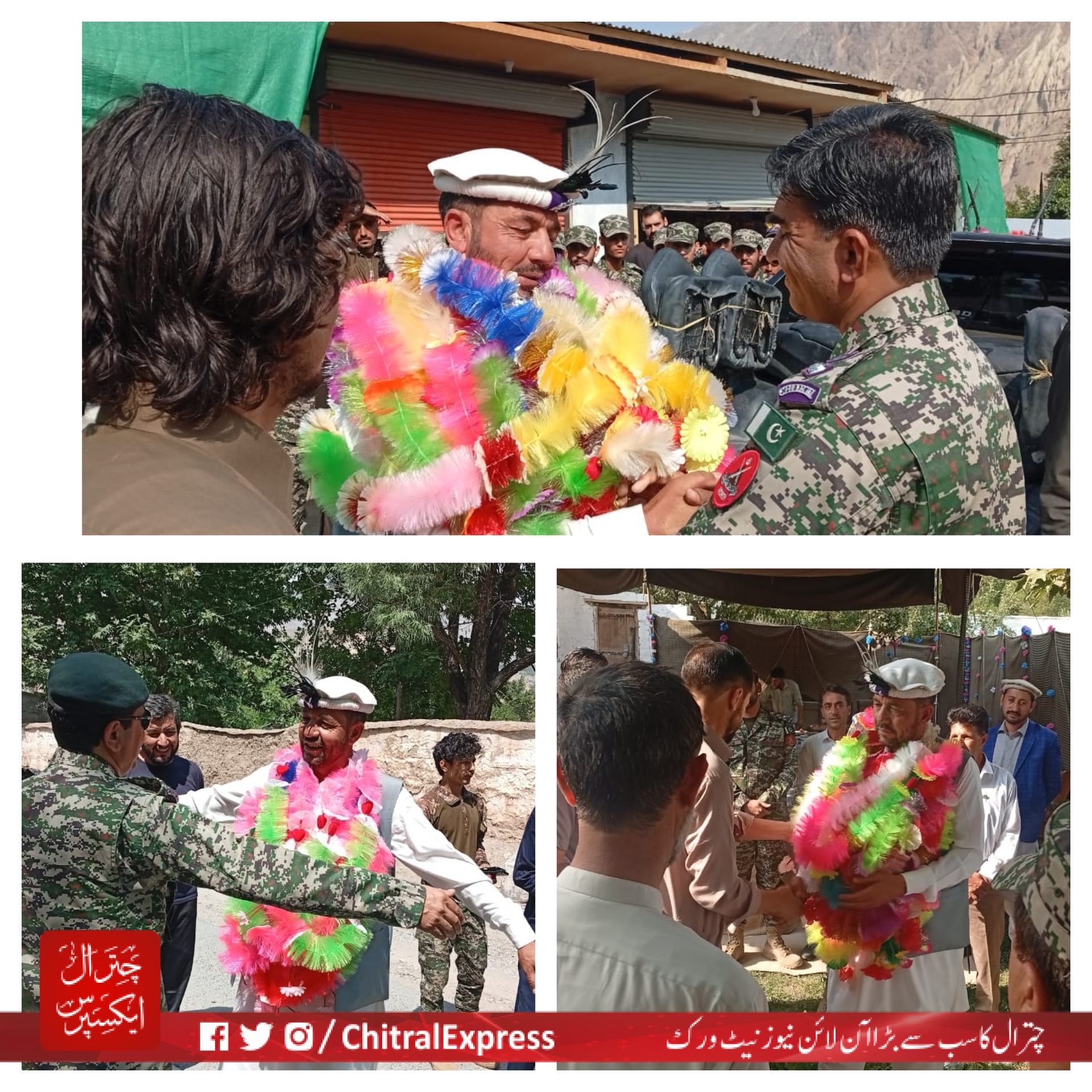 تحائف کے انبار ، پھولوں کے گلدستے، مستوج اور ہیڈ کوارٹر چترال میں آفیسرز اور جوانوں نے شاندار طریقے سے رخصت کیا ۔