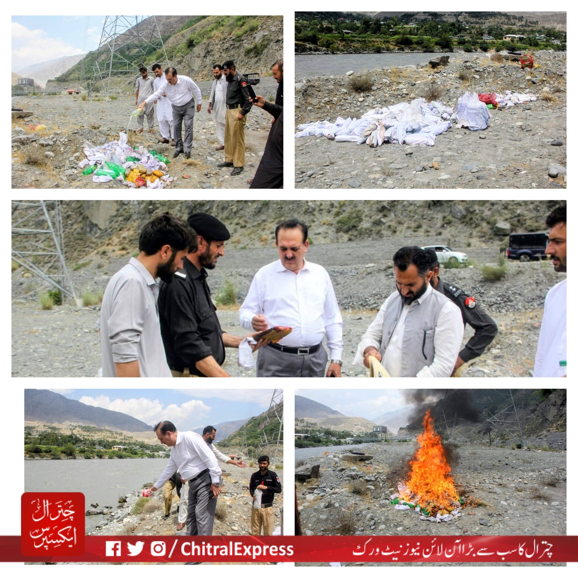 سنیئر سول جج (ایڈمن) فرمان علی اور اوڈبل آئی تھانہ سٹی چترال ایس آئی ابرار احمد کی موجودگی میں لوئر چترال میں مختلف مقدمات میں برآمد کی گئی منشیات تلف کردی گئی۔