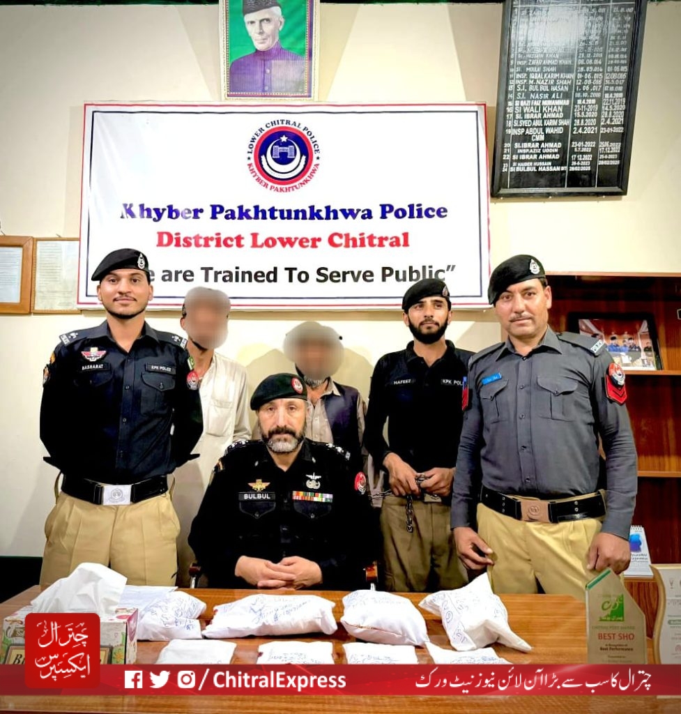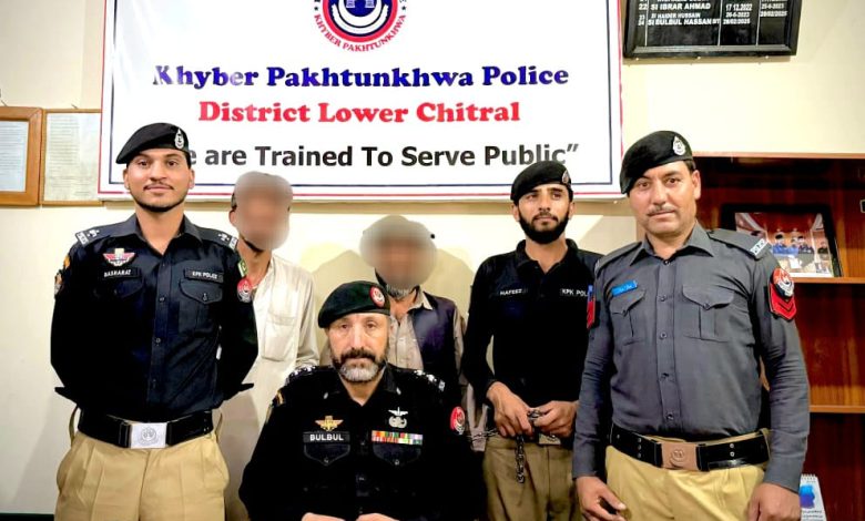 پولیس ٹیم نے شاہ نگار دروش میں کارروائی کرتے ہوئے ایک مشکوک گاڑی سے 3 کلو 648 گرام چرس برآمد کر کے دو ملزمان شبیر احمد اور صلاح الدین کو گرفتار کر لیا۔