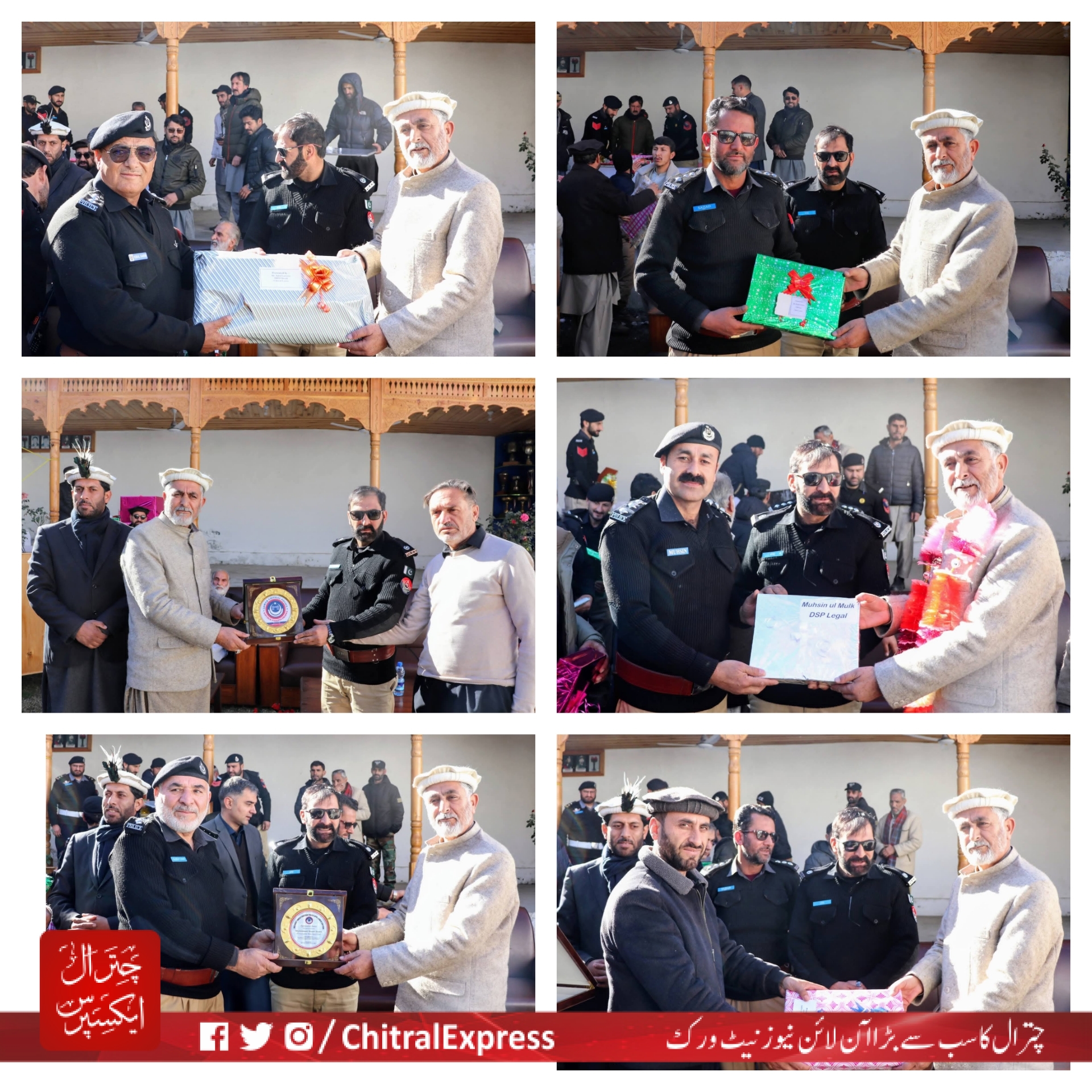 اس موقع پرپولیس افسران طرف سے انہیں تحائف پیش کیے گیے ۔تقریب میں آئی بی کے اسسٹنٹ ڈائرکٹر تمیز الدین، خیبر پختونخوا پولیس کے ریٹائرڈ افسران میں ڈی پی او میرکلان خان، ایس پی شیر احمد خان، ڈی ایس پی شیر راجہ جبکہ حاضر سروس افسران میں ڈی ایس پی سجاد حسین، ڈی ایس پی اقبال کریم، ایس ایچ او چترال علی احمد خان، ایس ایچ دورش بلبل حسن، ایس ایچ او عشریت حیدر حسین اور ایس ایچ او لٹکوہ قربان پناہ بھی موجود تھے۔ تقریب میں پریس کلب کے صدر ظہیر الدین، فن وثقافت کے معروف نام آفتاب عالم آفتاب، منصور علی شباب، گورنمنٹ کالج کے پروفیسر شفیق احمد، چترال یونیورسٹی کے پروفیسر ظہور الحق دانش اور دوسروں نے بھی شرکت کی۔