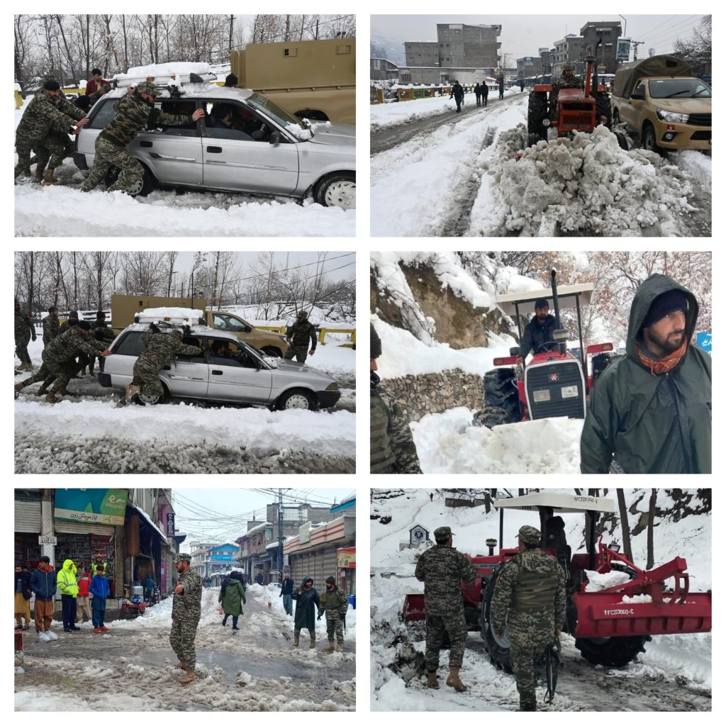 چترال سکاؤٹس کی ٹیمیںوں نےارندو اور دروش: سرحدی اور دور افتادہ علاقوں میں راستوں کی بحالی اورچترال ٹاؤن شہر کے اہم مقامات میں سڑکوں سے برف ہٹاکر آمد و رفت میں آسانی پیدا کردی۔