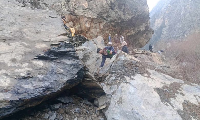 کے باعث مقامی لوگ اپنی مدد آپ کے تحت سڑک سے پتھر اور ملبہ ہٹانے میں مصروف ہیں تاکہ آمدورفت بحال کی جاسکے۔