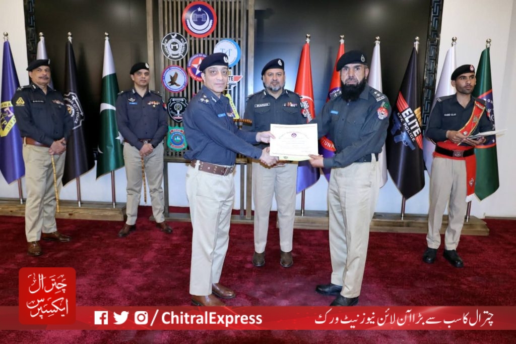 چترال(چترال ایکسپریس)خیبر پختونخوا پولیس کے انسپکٹر جنرل کی جانب سے ایک پروقار تقریب کے دوران ایس ایچ او دروش ابرار احمد کو